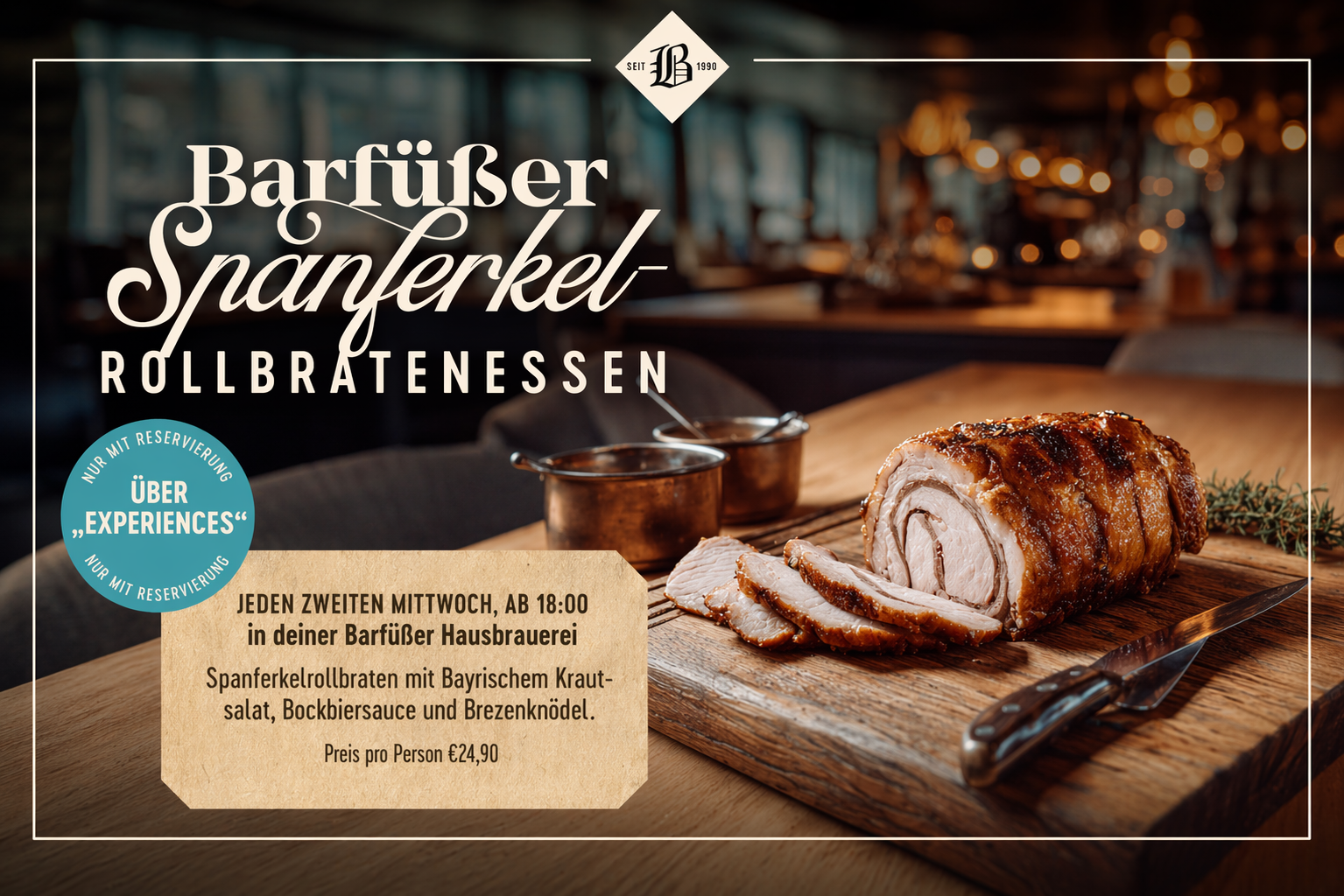 Spanferkelrollbratenessen jeden zweiten Mittwoch des Monats in allen Barfüßer Hausbrauereien