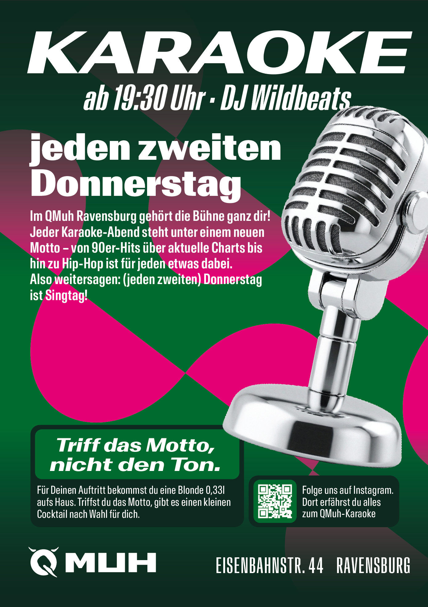 Erlebe unvergessliche Karaoke-Abende im QMuh Ravensburg Erlebe die ultimativen Karaoke-Nights 2026! An ausgewählten Terminen erwartet dich ab 19:30 Uhr DJ WildBeat mit bester Stimmung, Musik und Karaoke. Triff das Motto, nicht den Ton - erhalte ein Getränk als Prämie Unsere Motto-Abende bringen Abwechslung: von ABBA über Liebeslieder bis zu Deutschrap und Italopop. Wer ein […]